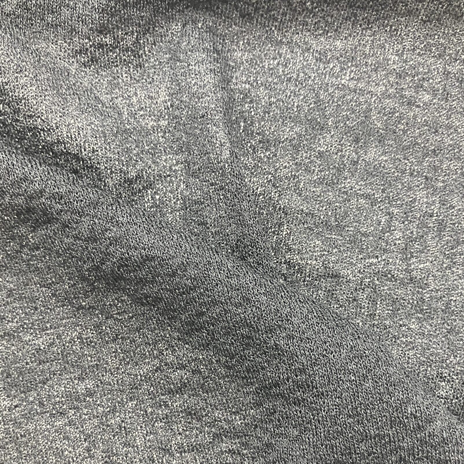 ポリエステルウールの細番手の混紡糸に環境に優しい高品質なリサイクルポリエステルをカバーリングした糸です。この糸は、「靴下のような筒状の編地」に編んでから染め