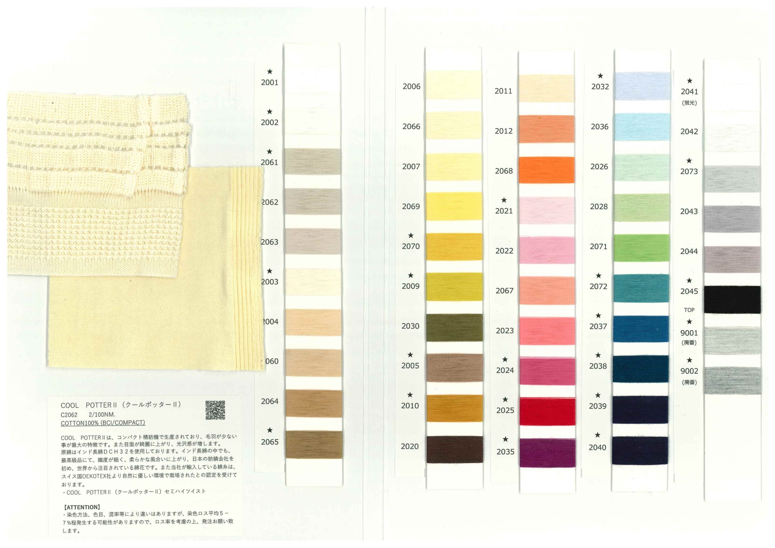 COOL POTTER Ⅱ is produced using compact spinning technology, with its most defining feature being minimal hairiness. This process results in a beautiful, clean fabric surface with enhanced luster.