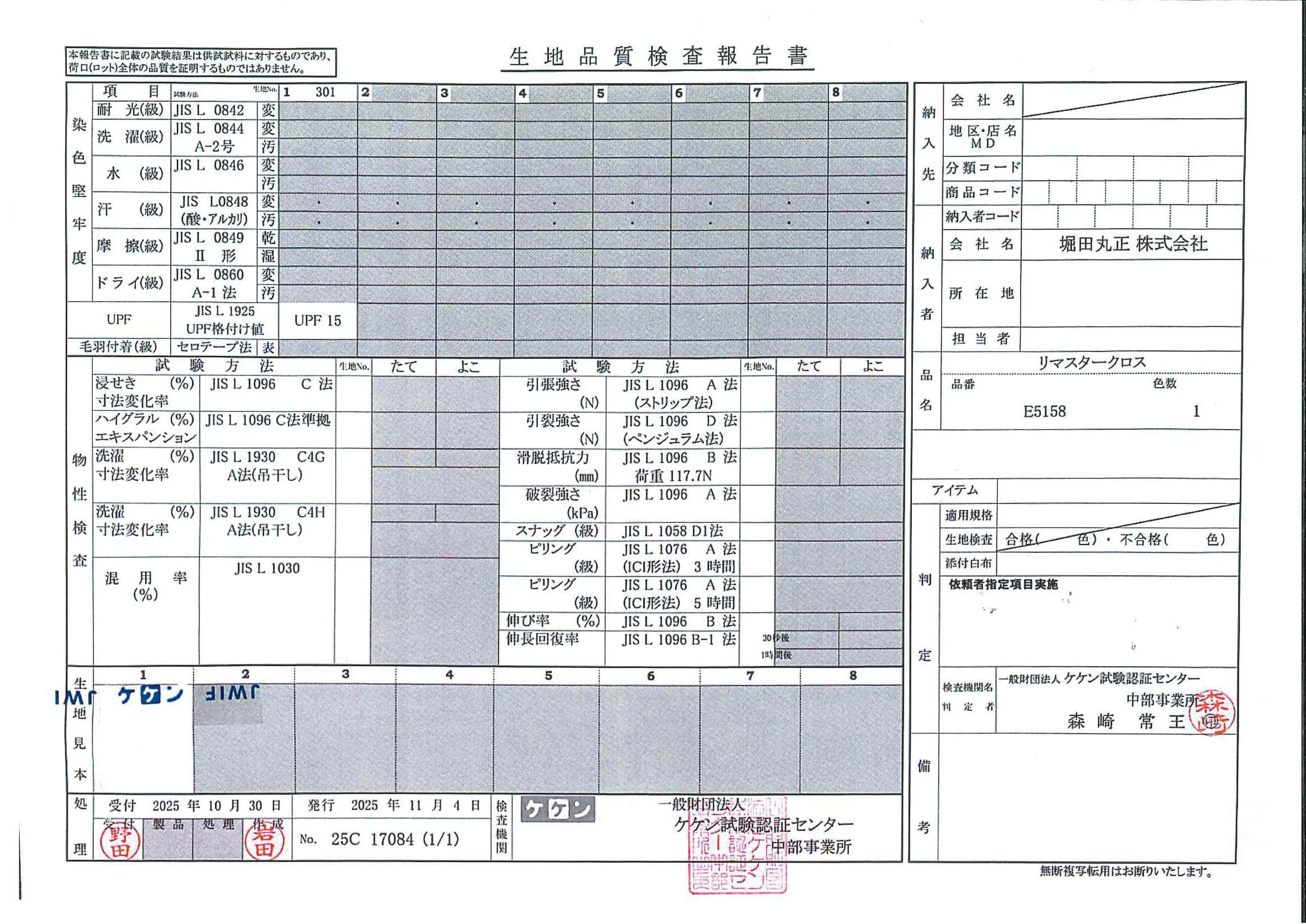 - リマスタークロスは、綿との交撚糸のため、UVカットの機能を保証するものではありません。
