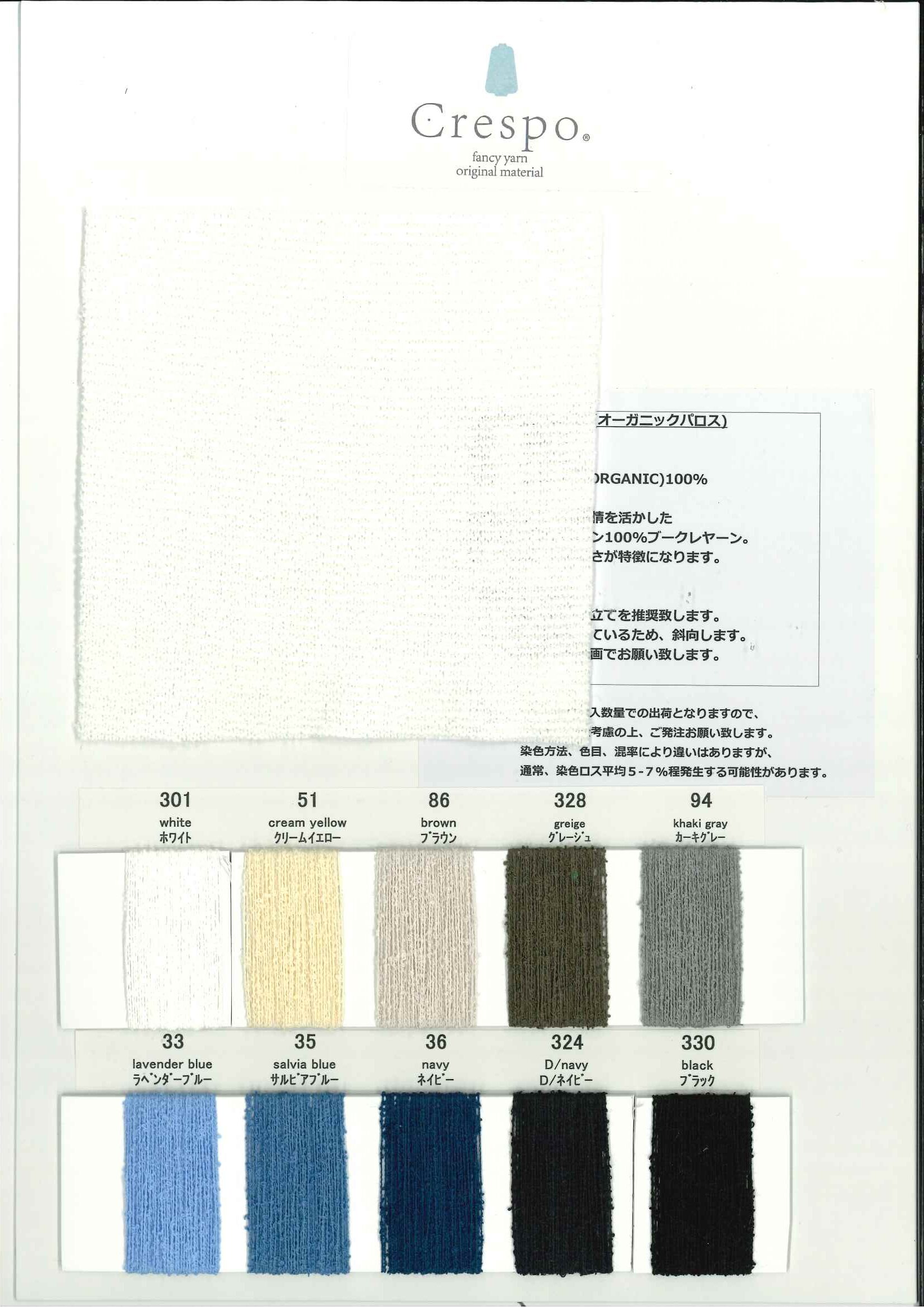 綿のナチュラルな表情を活かした綿(オーガニック)100%のブークレーヤーン。 ドライなタッチと軽さが特徴になります。
